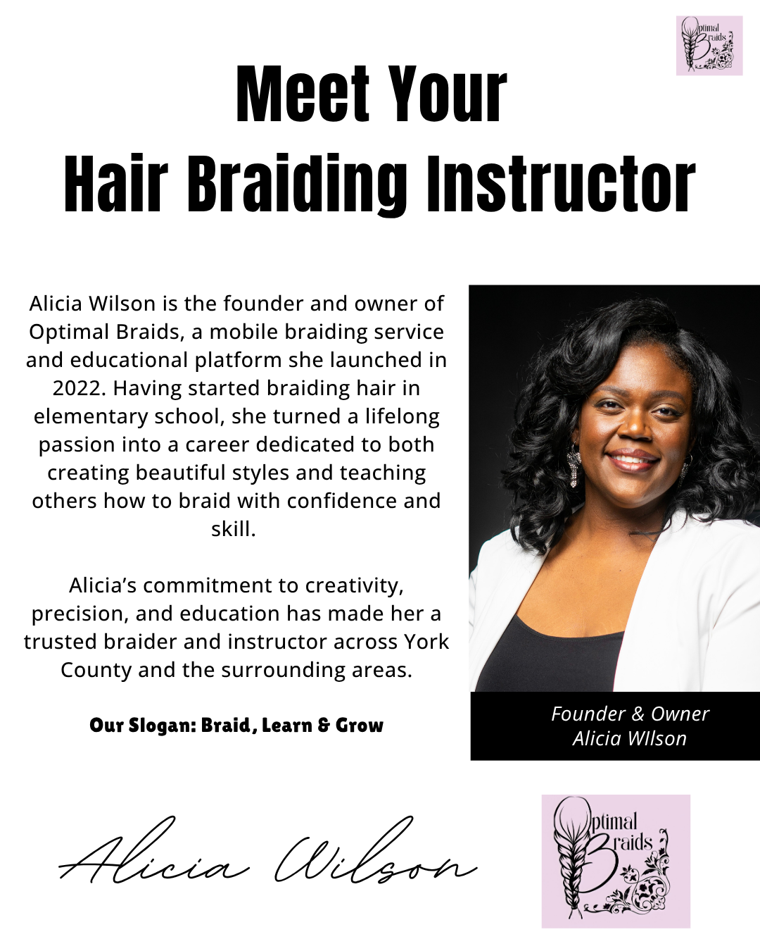Looking for a personalized braiding experience? Our private coaching program allows you to learn at your own pace with a customized package tailored to your specific needs!